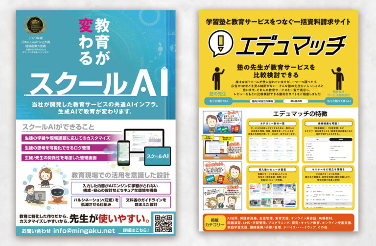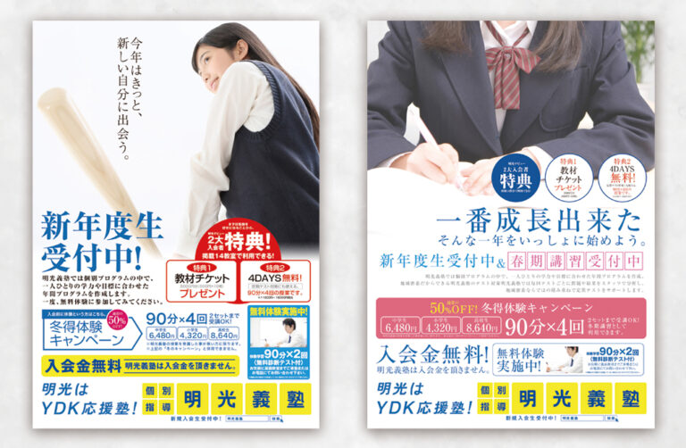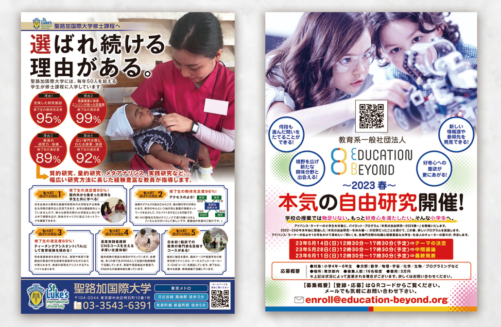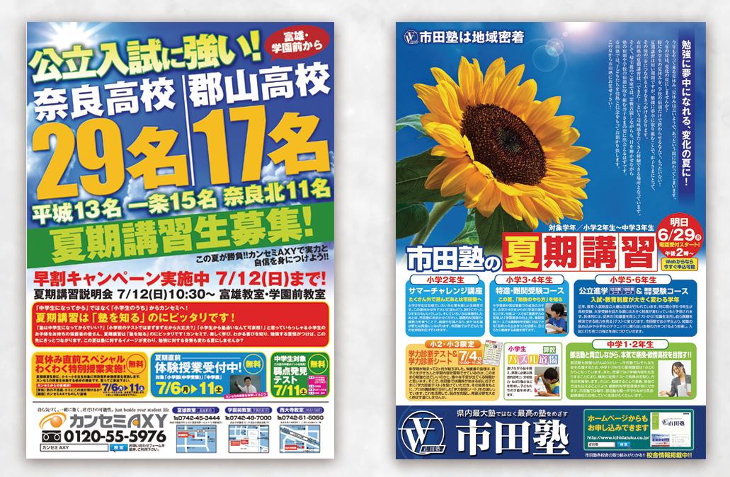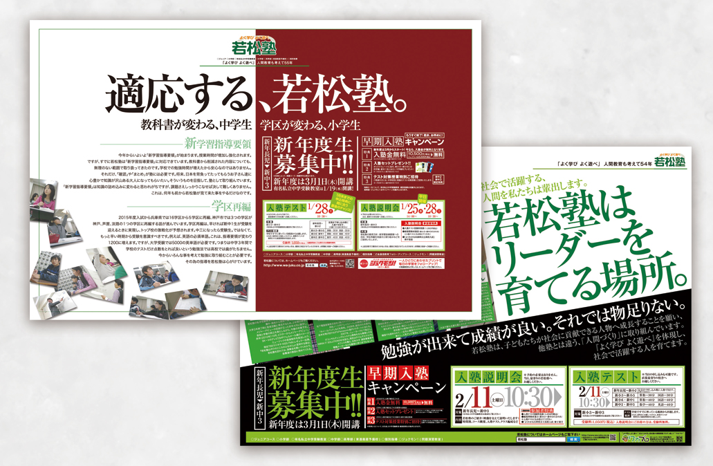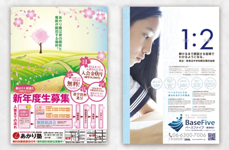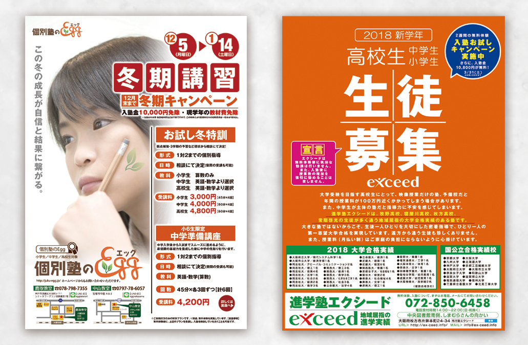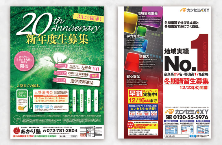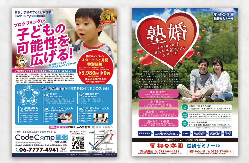 これまでに50教室以上の教育関連施設(学習塾・各種スクールなど)の折込チラシ制作に携わっており、現在も継続的にご依頼をいただいています。