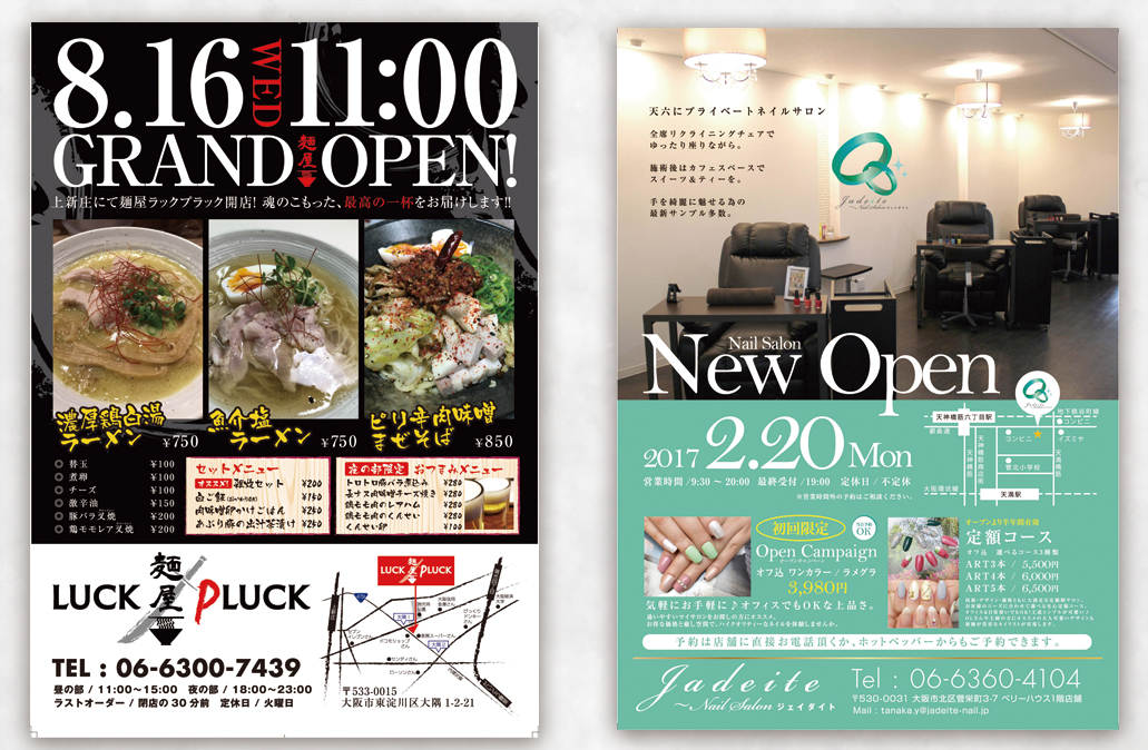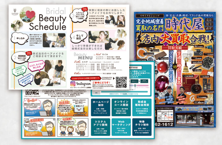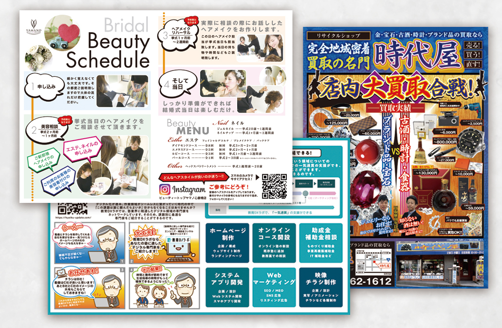 学習塾、スポーツジム、飲食店など、地域で事業を営むさまざまなお客様の広告制作をお手伝いしています。